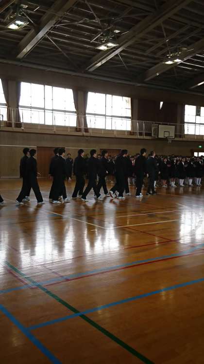 在校生から卒業生への記念品贈呈です。在校生の皆さん、ありがとうございました。来年・再来年は皆さんが主役です