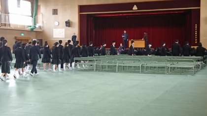 3年生はいよいよ本日から卒業式の練習を始めました。いつまでも心に残る卒業式になりますよう、一人ひとりが気持ちを込めて取り組んでほしいと思います。