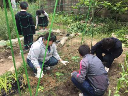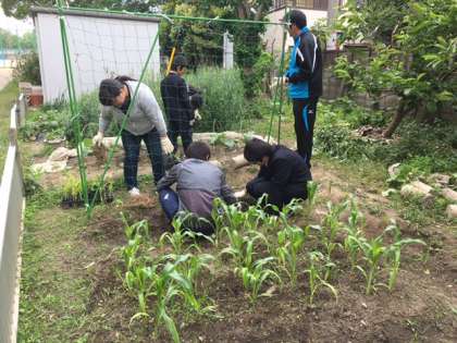 トウモロコシ、キャベツ、きゅうり、サツマイモを育てています。