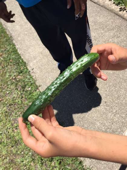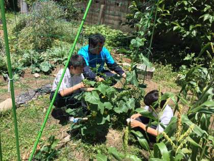 ジャガイモの収穫と同時にキュウリの世話もしました。