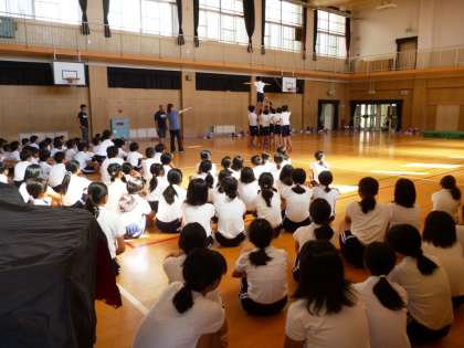 9月8日(金)午後、姫島小学校へ体育の出前授業に行きました。組体操は、「全員の気持ちを揃えることの大切さ」「力の入れ方やタイミングに集中すること」などを中心に説明しました。技が完成していく楽しさを感じてくれたことと思います。