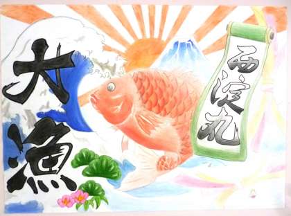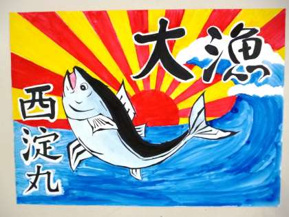体育大会まであと17日!!廊下に西淀丸の大漁旗が掲示されました。体育大会成功のため、がんばれ3年生!!
