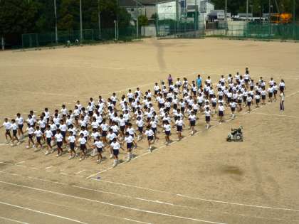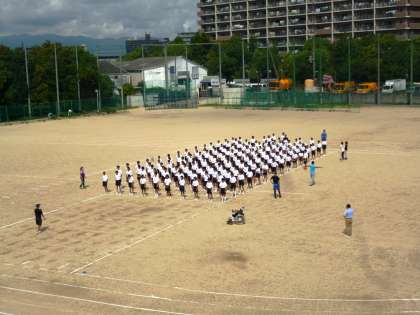 本日の2・3限目、1年生が学年練習を行いました。200mのトラックがとれる大阪市1の運動場、元気よく頑張ってほしいと思います。6限目には、3年生が南中ソーランを全体で踊りました。息を揃え、声を揃え、動きを揃え頑張ってほしいと思います。