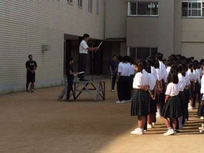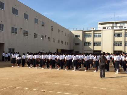 9月19日(火)の全校集会で、校長先生から「今週は祝日が2回あります。敬老の日と秋分の日です。日本には祝日が17日あり、世界的に見て祝日が多い国です。今週の秋分の日は、春分の日と同じで昼と夜の長さが同じ日ということで祝日になっています。昼夜の長さが同じというだけで祝日にしているのは、日本には四季があり、自然との関わりがをとても大切にしているためです。また、昨日の姫里敬老会では吹奏楽部が素晴らしい演奏をしてくれました。」と話がありました。表彰では、陸上部の秋季総合体育大会4×100m第3位や大阪市中学校生徒理研究発表会3名の表彰がありました。他にも3連休中に、サッカー部が大阪府秋季総合体育大会の2回戦を勝ちました。