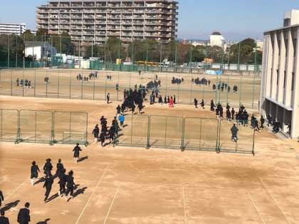 1月13日(土)3限目、地震・津波の避難訓練を実施しました。地震発生時は自分の身を守り、地震が治まってから運動場に一次避難しました。その後、津波警報が発令され二次避難として全員で校舎3階に避難をしました。消防署の方から「私は阪神淡路大震災のとき、中学生で神戸に住んでいました。地震で神戸の街は一変しました。南海トラフ巨大地震は、今後30年間で70%の発生率です。日頃から、避難についての意識を持っておいてください。」校長先生からは「校舎2階・3階の高さは何mか知っていますか?」という話がありました。学校の校舎は2階で約4m、3階で約7.5m。木造家屋やマンションより高い構造になっています。