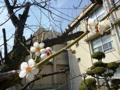 3年生は、3月2日(金)午後から公立一般選抜の出願に出発しました。玄関の梅の花(好文木)も満開になり、3年生の出発を見送りました。