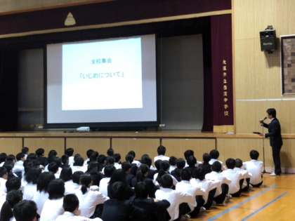 全校集会では、着任された先生の紹介・ソフトテニス部の表彰・校長先生から「いじめについて考える日」の話がありました。ゴールデンウィークも終わり、今日から平常授業がスタートします。体調管理に気をつけて、充実した5月にしてほしいと思います。