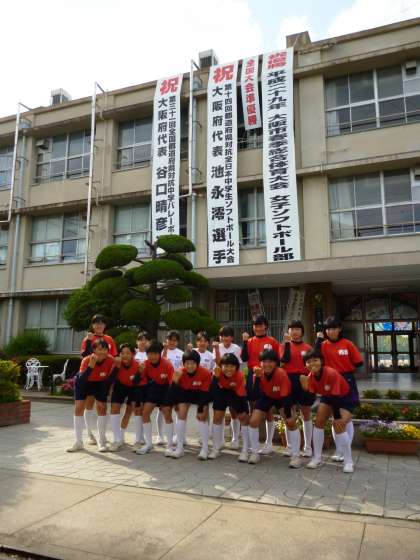3月下旬に実施された第14回都道府県対抗全日本女子ソフトボール大会に出場し、準優勝に貢献した池永さんの記念垂れ幕が完成し、今日ソフトボール部員も入り記念写真を撮りました。これからも、頑張ってほしいと思います。