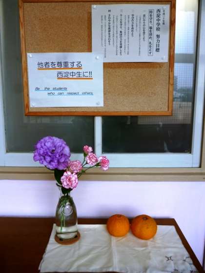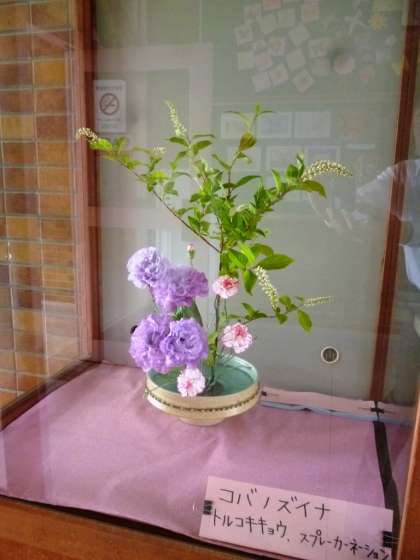 玄関・校長室前の生け花を活けかえていただきました。花があり心がほっとする空間となっています。いつもありがとうございます。
