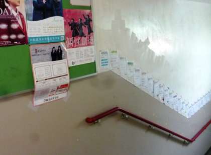 3年生は、来週からの修学旅行のため中間テストを実施しています。3年生最初のテストで力を発揮してほしいと思います。また、階段には修学旅行に向けてのカウントダウンや高等学校案内の掲示物が増えてきました。