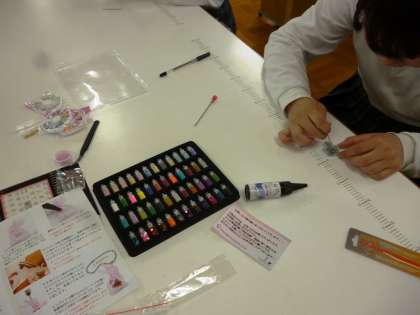昨年度校長経営戦略加算予算で購入した「UVレンジキット」を使い、アクセサリー作りをしています。作り方のコツをつかんで、思い通りの作品ができるように頑張ってください。