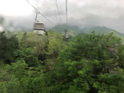 ロープウェイのゴンドラに乗って、栂池高原に向かいました。