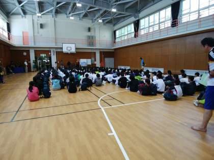 入館式の様子です。施設の方にオリエンテーションしていただいてます。