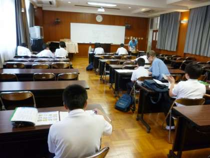 7月30日(月)から5日間、元気アップ学習会を実施しています。夏休みの宿題や自主学習教材を持参し、計画的に学習をしています。参加者は10名から20名で部活動前に参加したりする生徒もいます。