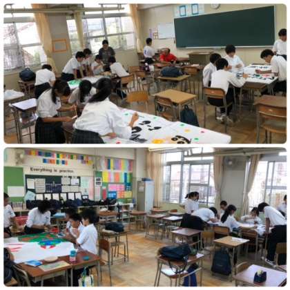 どのクラスも下書きが終わり、色いれはじめました。イメージしている色を作り出すのに苦労しているようです。