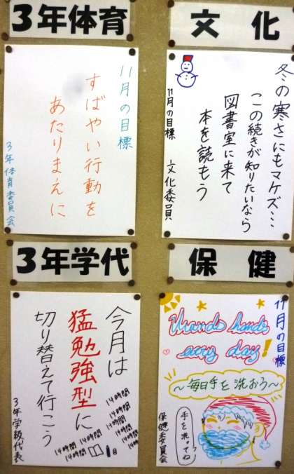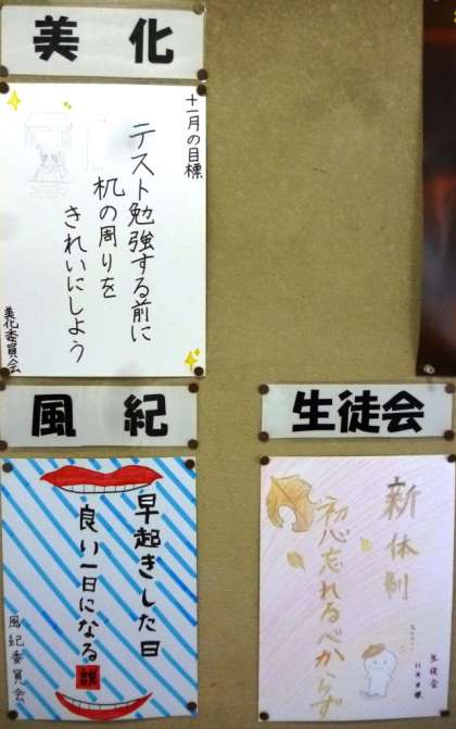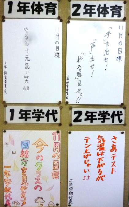 後期生徒会・各委員になり、初めての目標を掲げました。過ごしやすい学校生活になるように、皆さんの力を合わせていきましょう!