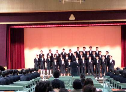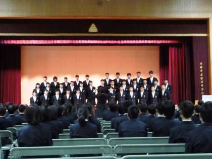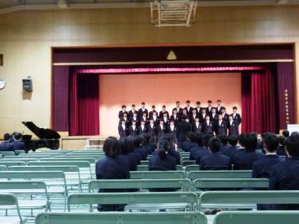 12月6日(木)午後、3年生は合唱コンクールを行いました。各クラスとも心を一つに歌い上げた素晴らしい合唱でした。課題曲は「モルダウ」自由曲は1組「生きている証」2組「あなたに会えて・・・」3組「きみにとどけよう」4組「心の瞳」5組「HEIWAの鐘」。司会進行・指揮・伴奏のみなさんご苦労様でした。