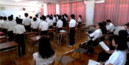 本校では1年5組の音楽の授業を公開し、そのあとブロック内の中学校音楽科教員で研究協議を行いました。