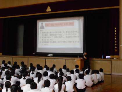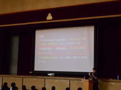 万博への校外学習の取り組みがはじまりました。全校生徒が体育館に集合して、目的を共有し、今後の流れを確認しました。