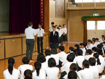 西淀川区中学生親善ソフトボール大会の賞状の伝達を行いました。その後、地域での過ごし方について、話をしました。地域に愛される学校を目指して頑張ります。応援よろしくお願いいたします。