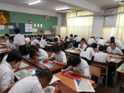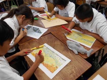 1年生の文化発表会の取り組みの様子です。展示作品を作成中!