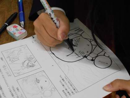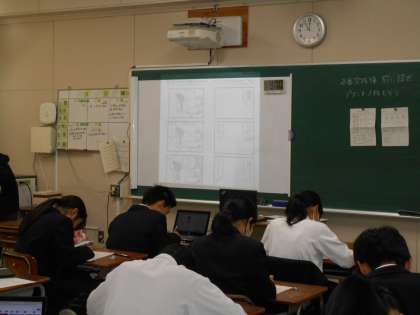 2年生の美術の授業の様子です。漫画を作成中です。