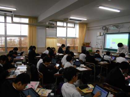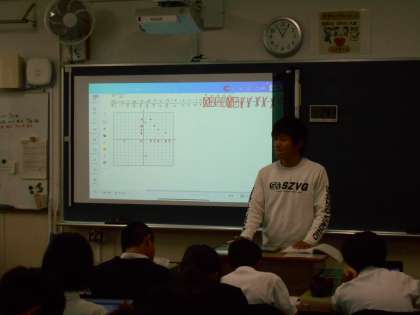 1年生の数学の授業の様子です。反比例のグラフについて勉強しています。