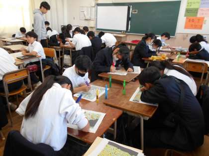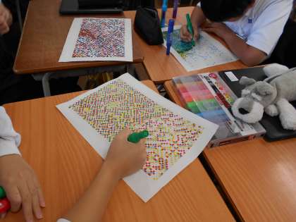 1年生の取り組みの様子です。学年のみんなで協力して、1枚の作品を作っています。完成が楽しみです。