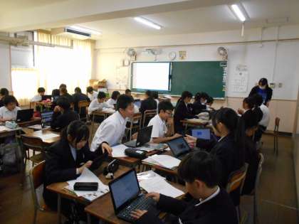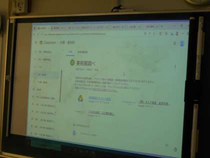 1年生の美術の授業の様子です。端末を使って、全国の美術館について調べています。