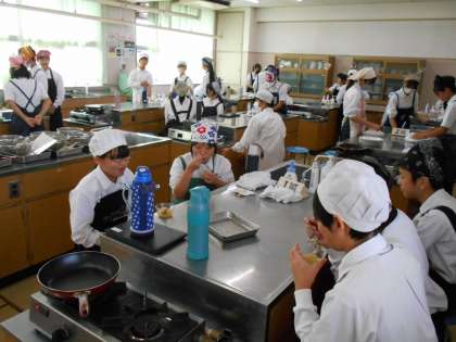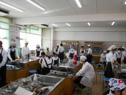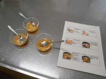 1年生の家庭科の授業の様子です。調理実習でシャーベットを作りました。