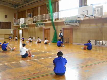 3年生の体育の授業の様子です。男子はバスケットボール、女子はサッカーです。実力テストも終わり、楽しそうに活動しています。
