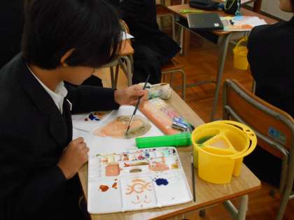 3年生の美術の授業の様子です。それぞれが、自画像等の作成に取り組んでいます。