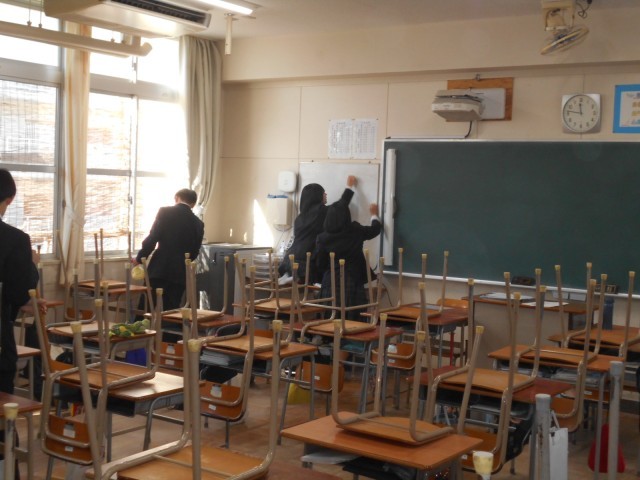 大掃除の様子です。教室の床、廊下、トイレ、窓ガラスなど、隅々まできれいにしてくれています。ありがとう。