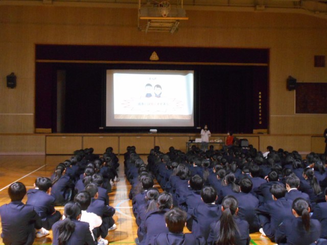 1年生「いのちの授業」の様子です。外部から講師の方をお招きして、お話をしていただきました。