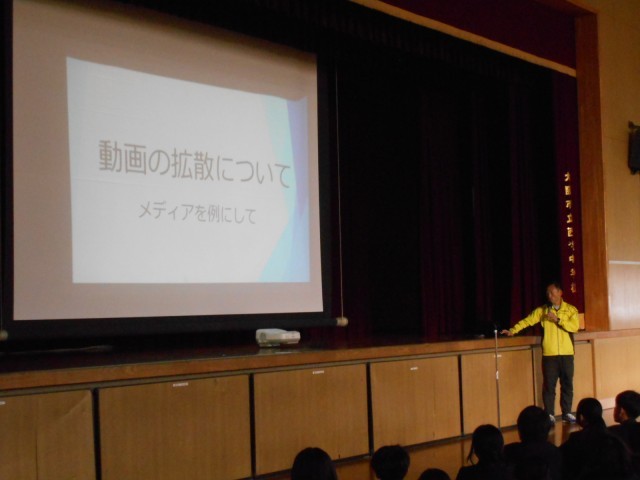 全校集会の様子です。最初に、陸上部の大阪市選抜の表彰を行いました。その後、「阪神・淡路大震災」の話から、防災について話をしました。災害に備え、もしもの時の待ち合わせ場所や防災グッズの準備など、ご家庭でもお話しいただけたらと思います。生活指導の西先生からは、動画の拡散の危険性について話がありました。