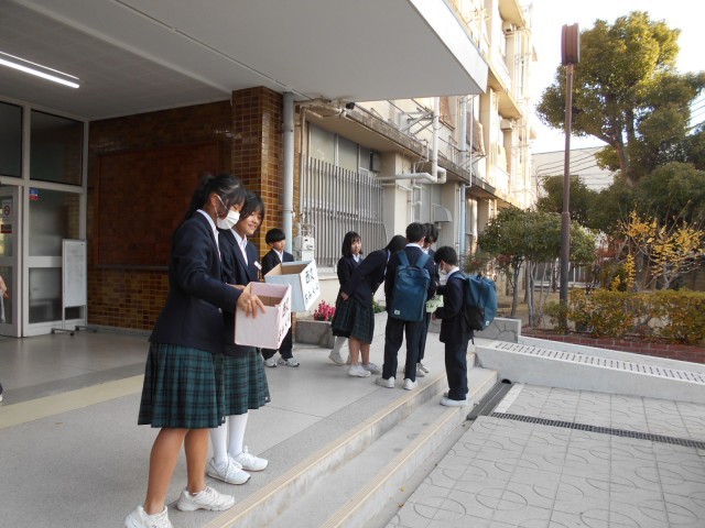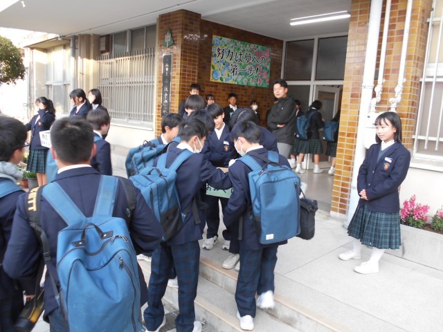 生徒会の取り組みで、登校時に「西淀おみくじ」を配布しています。登校した生徒も、手作りのおみくじを手にして喜んでいました。