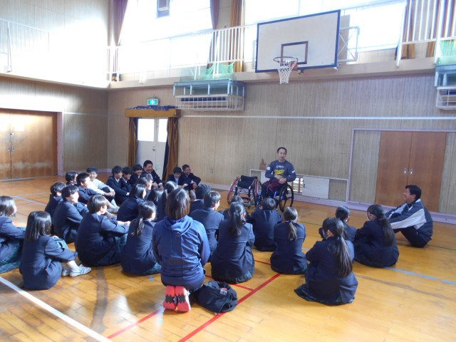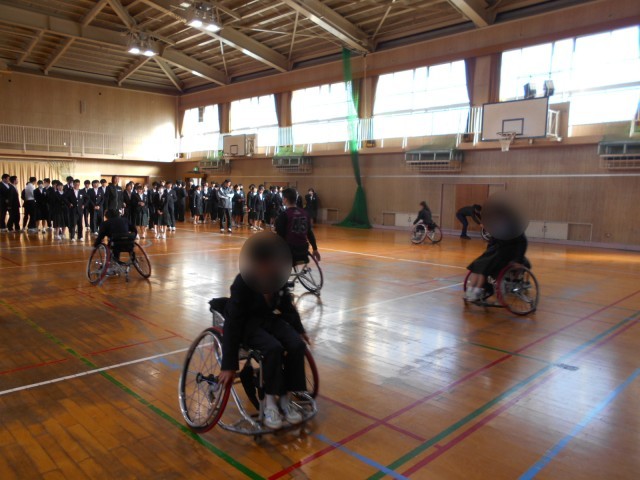 パラリンピックキャラバンの活動の様子です。車いすバスケットに挑戦しました。