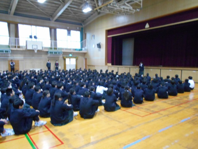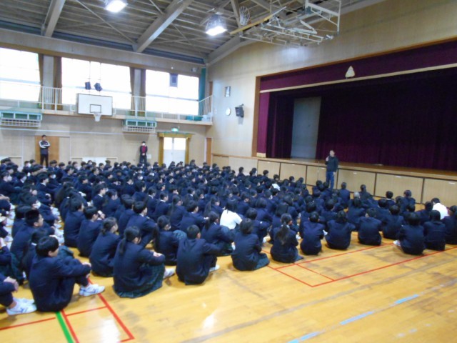 全校集会の様子です。「頑張る人はかっこいい」「それを応援する人もかっこいい」という趣旨の話をしました。お互いを支え合い応援できる学校にしていきましょう!
