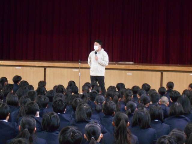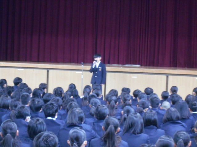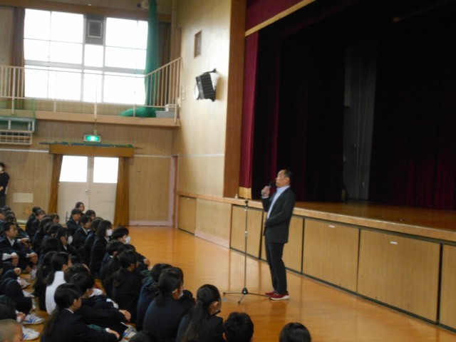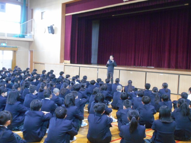 全校集会の様子です。3年生に、卒業に向けて、「今までやってきた当たり前のことをしっかりやろう!」と話をしました。最高学年としての締めくくりの大切な時期です。
