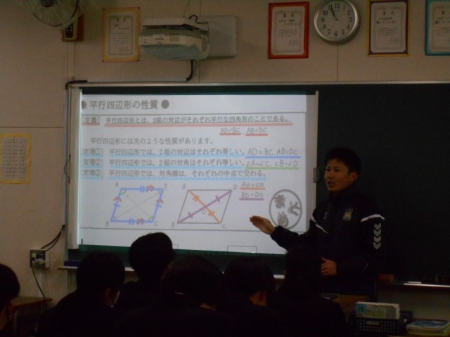 2年生の数学の授業の様子です。平行四辺形の性質について、学習しています。