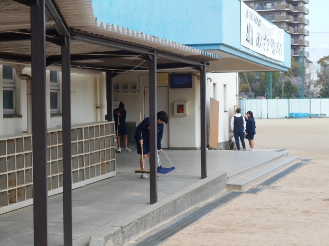 新年度がスタートしました。明日の入学式に向けて、式場設営と校内清掃をしています。