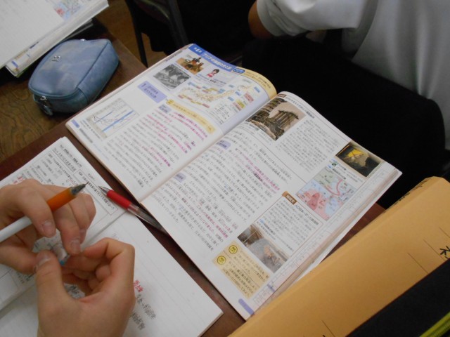 3年生の社会科の授業の様子です。「日本資本主義の父」渋沢栄一について学習しています。
