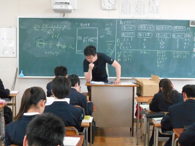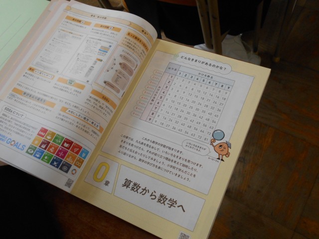 1年生の数学の授業の様子です。算数が数学になります。頑張ってください。