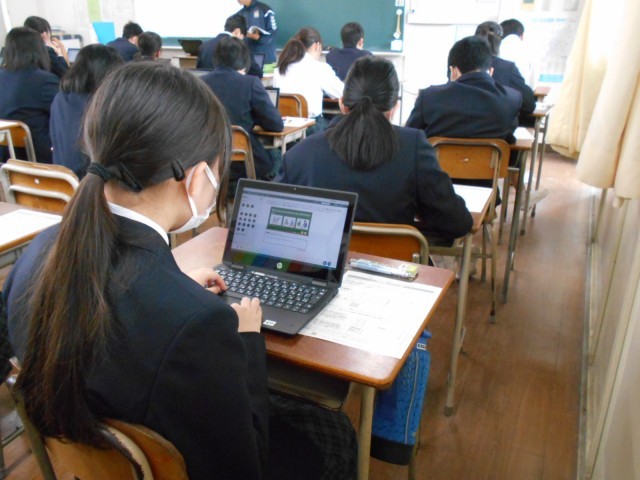 全国学力・学習状況調査【英語】の様子です。本日は、英語の「読むこと」「書くこと」「聞くこと」のテストに取り組んでいます。国語・数学は23日に行われます。