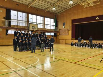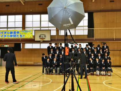 あいにくの雨なので、体育館での撮影となりました。緊張している様子もありましたが、次第に表情が和らいでいました。