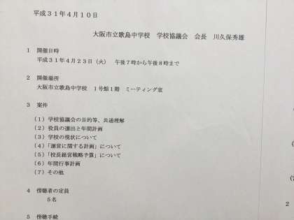 大阪市立歌島中学校 平成31年度第1回学校協議会の会議を、次の