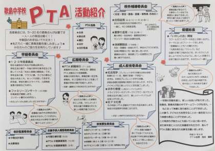 また歌島中学校PTA活動紹介のプリントも配布させていただきました。