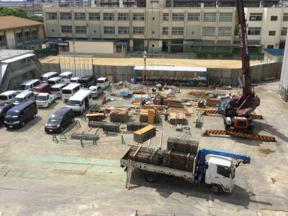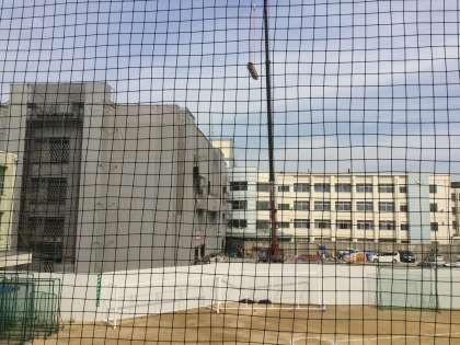 新校舎建設現場では、連休前に4階屋上までのコンクリート打設が行われました。