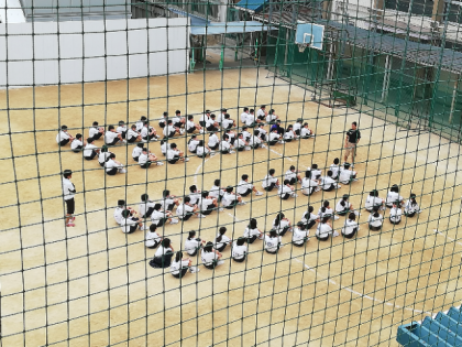 体育の時間を利用して、一泊移住のバス座席の確認を行いました。