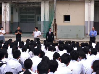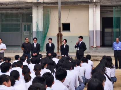 本日全校集会では、教育実習生の紹介がありました。3週間の実習期間になります。そして、新しく来られたC-NETの先生の紹介がありました。